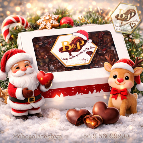 Los bombones pueden ir surtidos o seleccionados a pedido, según disponibilidad de stock, permitiéndote personalizar tu regalo y hacerlo aún más especial. Presentados en una cajita temática, lista para regalar, es una opción perfecta para sorprender a familiares, amigos, clientes o simplemente darte un gusto navideño (porque sí, te lo mereces).