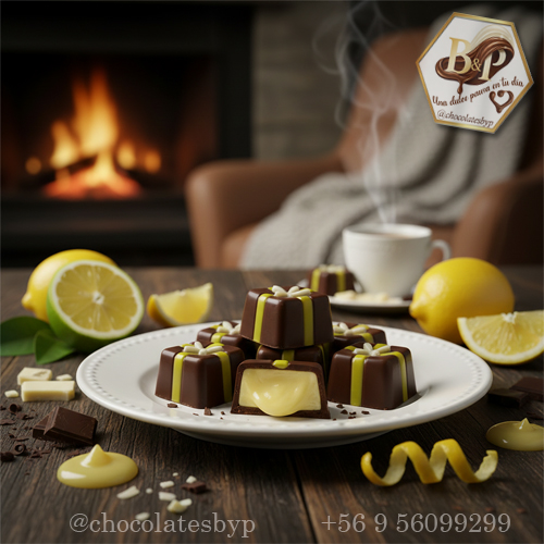 Suave chocolate de leche relleno con cremosa y fresca crema de limón natural, un toque cítrico irresistible.
